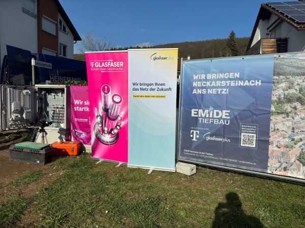 Fast auf den Tag genau ein Jahr nach dem Baubeginn in Neckarsteinach wurde vergangenen Donnerstag der erste Hausanschluss fertig gestellt. Der erste Kunde freut sich ab sofort über Zugang zum leistungsstarken Glasfasernetz der Telekom.
